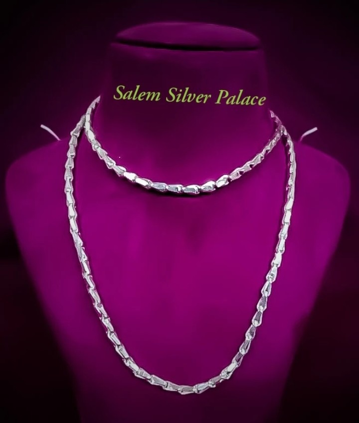 Silver Chain Hand crafted Traditional Silver Jewellery Special Customised Order Weight 45 gms Height 30 Inches Salem Silver Palace is the best trusted Online Store and Physical Store to buy All Types Of Silver Articles, Silver Ornaments and Silver Jewellery at Silver Wholesale Prices. Safe Shipping Facilities Are Available All Over The Country. Join our Silver Savings Schemes and get Maximum benefits for your precious Savings. Download our app at Google play store to know Daily Silver Rates https://play.google.com/store/apps/details?id=com.foxthree.salemsilverpalace For More Information Visit Our Website www.salemsilverpalace.in For Orders Contact Salem Silver Palace Silver Wholesale Jewellery Shop In Salem Shevapet Salem 636002 Tamil Nadu India 9894353579 6382456939