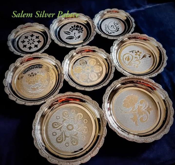 Silver Shell Plates with engravings Salem Silver Business to Business @80 Hallmark Silver Standards Weight Ranges starts from 100 gms Minimum order 2 kgs Assorted sizes can be done Salem Silver Palace is the best trusted Online Store and Physical Store to buy All Types Of Silver Articles, Silver Ornaments and Silver Jewellery at Silver Wholesale Prices. Safe Shipping Facilities Are Available All Over The Country and Overseas Countries like Singapore, Canada, Malaysia and The United States of America Join our Silver Savings Schemes and get Maximum benefits for your precious Savings. Follow us on Instagram https://www.instagram.com/invites/contact/?i=10zu3chxezfkh& utm_content=3yeza9c Download our app at Google play store to know Daily Silver Rates and Salem Silver rates Install now to know today's silver rate https://play.google.com/store/apps/details?id=com.foxthree.salemsilverpalace For More Information Visit Our Website www.salemsilverpalace.in For Orders Contact Salem Silver Palace Silver Wholesale Jewellery Shop In Salem Shevapet Salem 636002 Tamil Nadu India 9894353579 6382456939